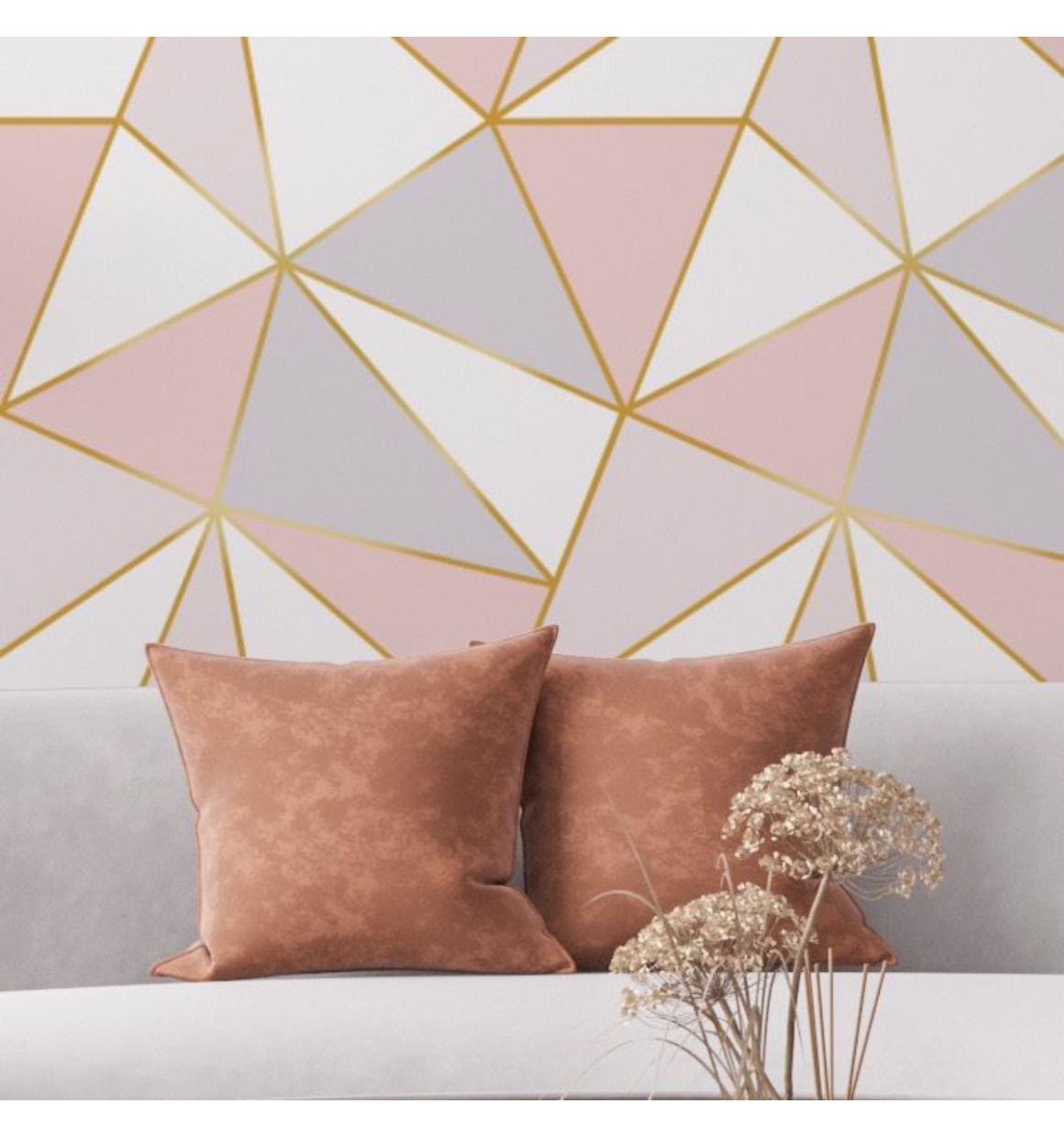 Papel de Parede Autoadesivo Triangulos Grandes Com Dourado