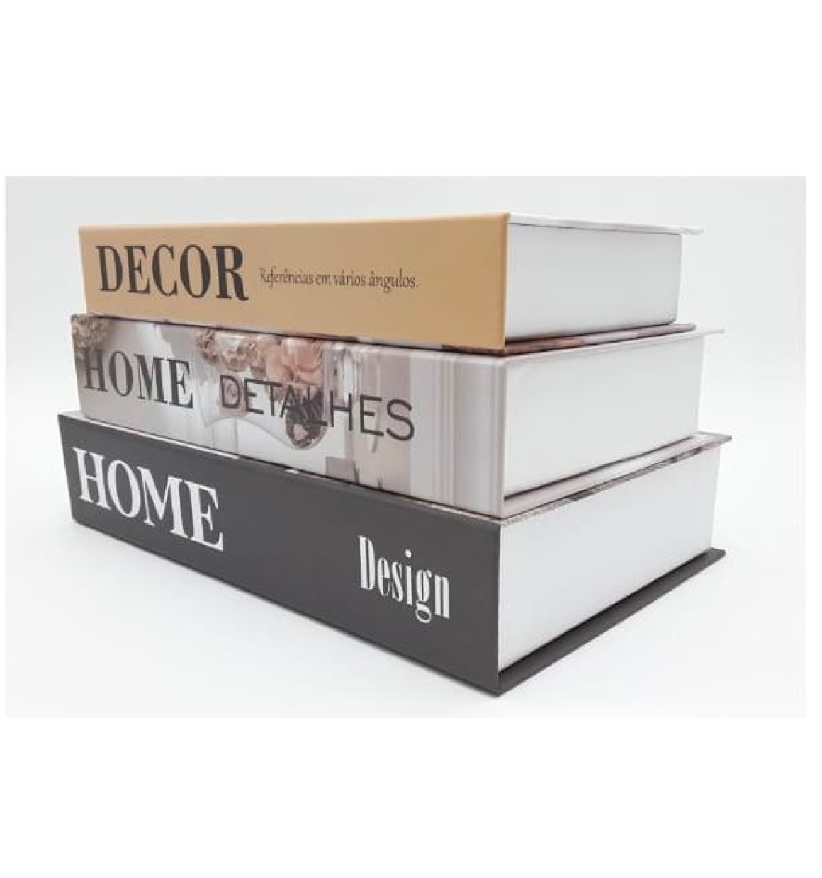 Caixa Livro Decorativa com 3 Peças - Home Design Preta