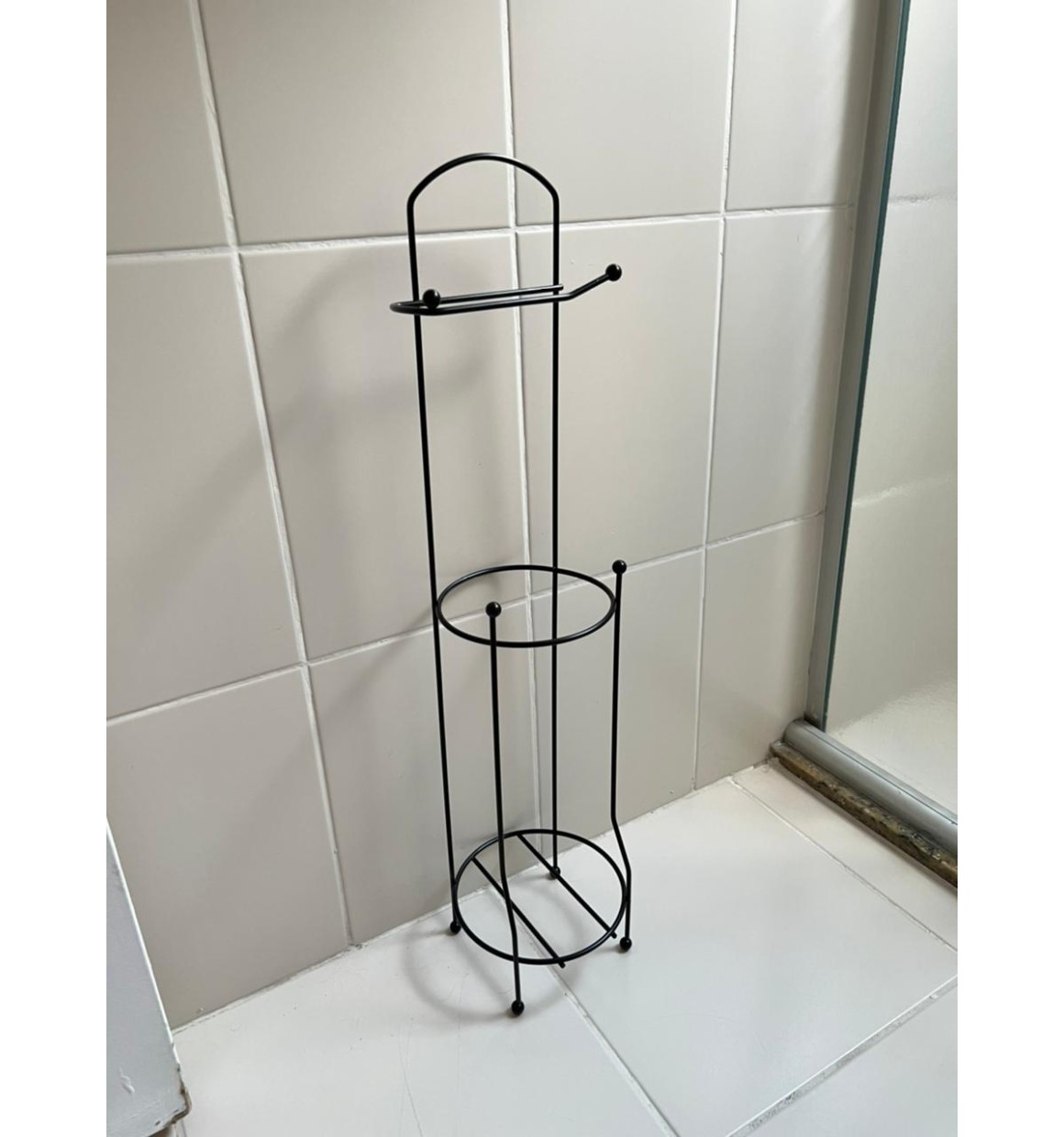 O Suporte para Papel Higiênico em Aço Preto é altamente resistente e durável, com design slim que se adapta facilmente a diferentes estilos de banheiro.