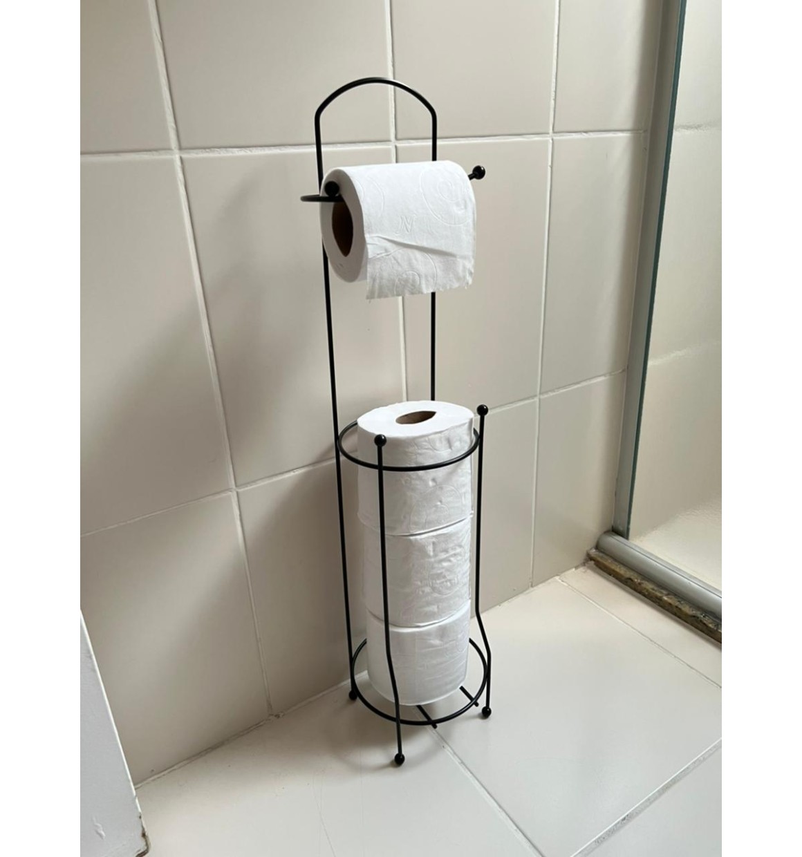 Possui prateleira vazada na base para colocar mais 4 rolos de Papel Higienico .