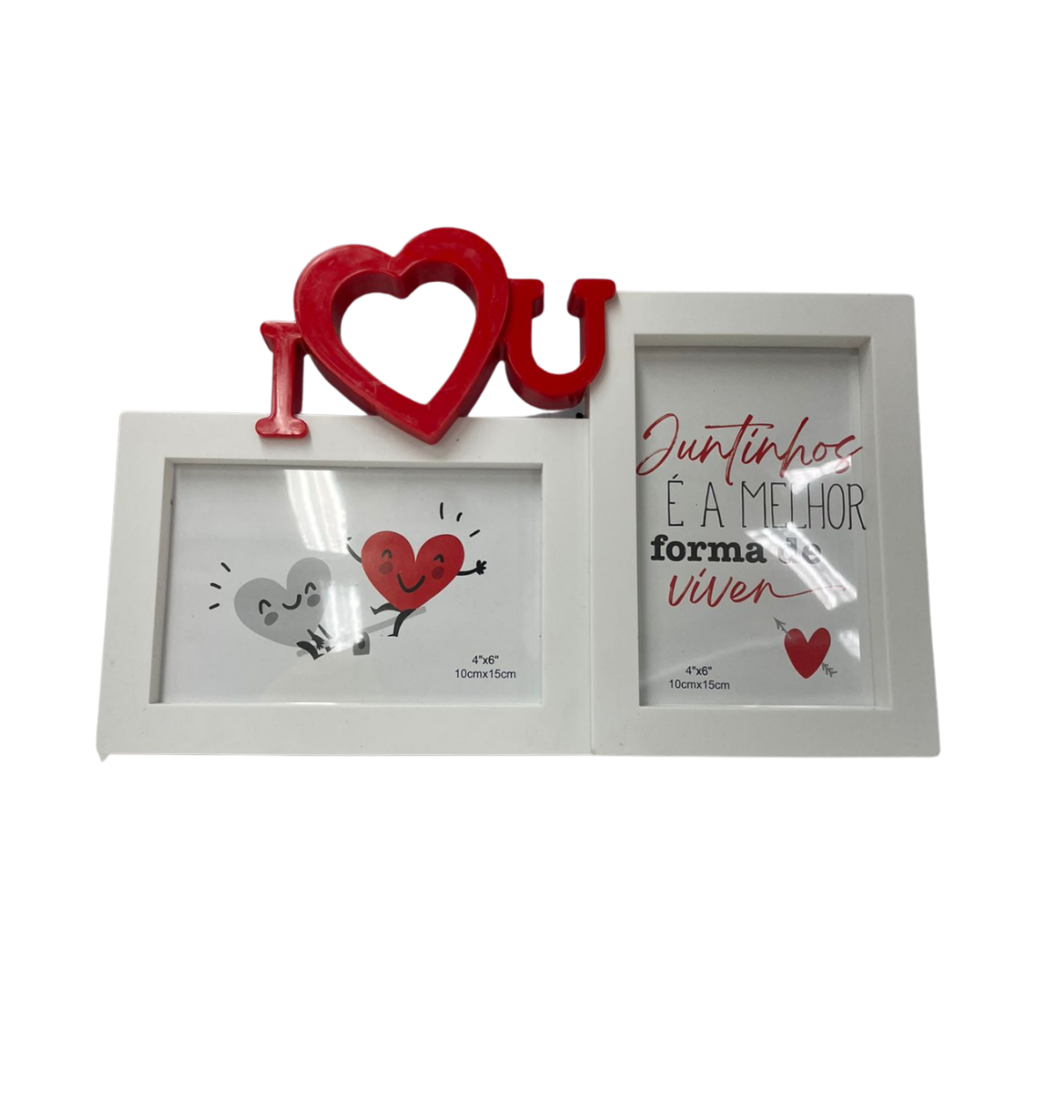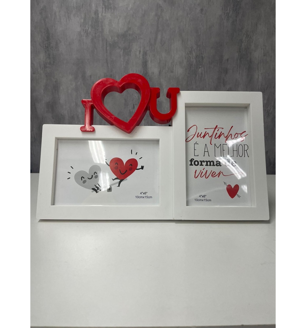 Porta Retrato Branco para 2 Fotos 10x15 - "I Love You"