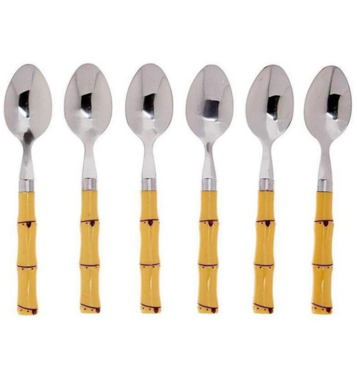 Jogo 6 Colheres Inox Com Cabo Plástico Bambu Natural.