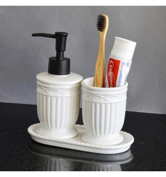 Contém:1 Porta Sabonete Liquido 250ml / 1 Porta Escova de Dentes/ 1 Bandeja