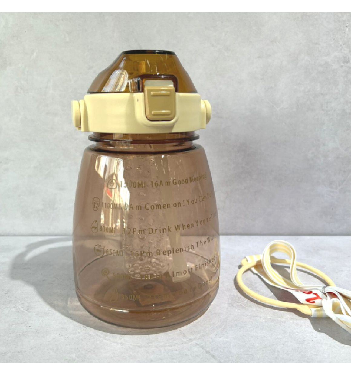 Projetada com marcador do tempo e citações inspiracionais, esta garrafa de água é perfeita para ajudar você se manter motivado para beber água suficiente durante todo o dia. Apresentado com aspecto semitransparente e escala de capacidade ajuda você medir sua ingestão diária de água de água com facilidade e claramente. É divertido e fácil para qualquer objetivo de fitness incluindo perda de peso, ganho muscular, controle de apetite e saúde geral.