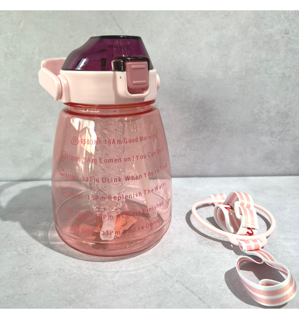 Garrafa Rosa de Plástico com Canudo , Alça e Infusor - 1500ml