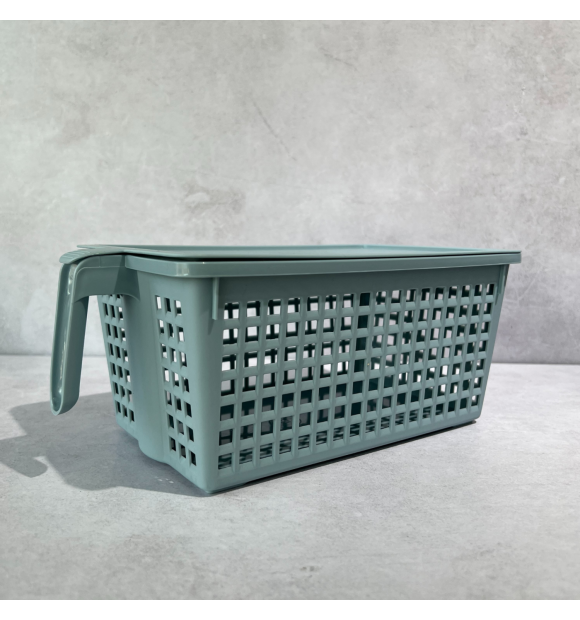 Caixa Organizadora de Plástico Azul com Tampa Médio