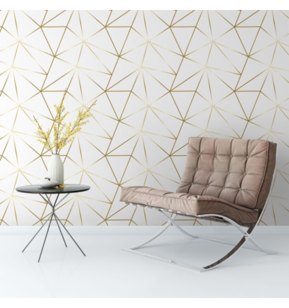 Papel de Parede Autoadesivo Zara Off White com Dourado.