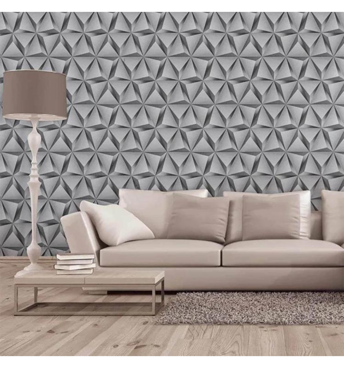 Papel de Parede Autoadesivo 3D Cinza com Dourado.