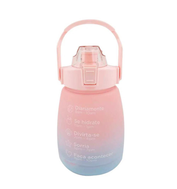 Garrafa Degradê com Adesivo Motivacional - Rosa com Azul 1200ml