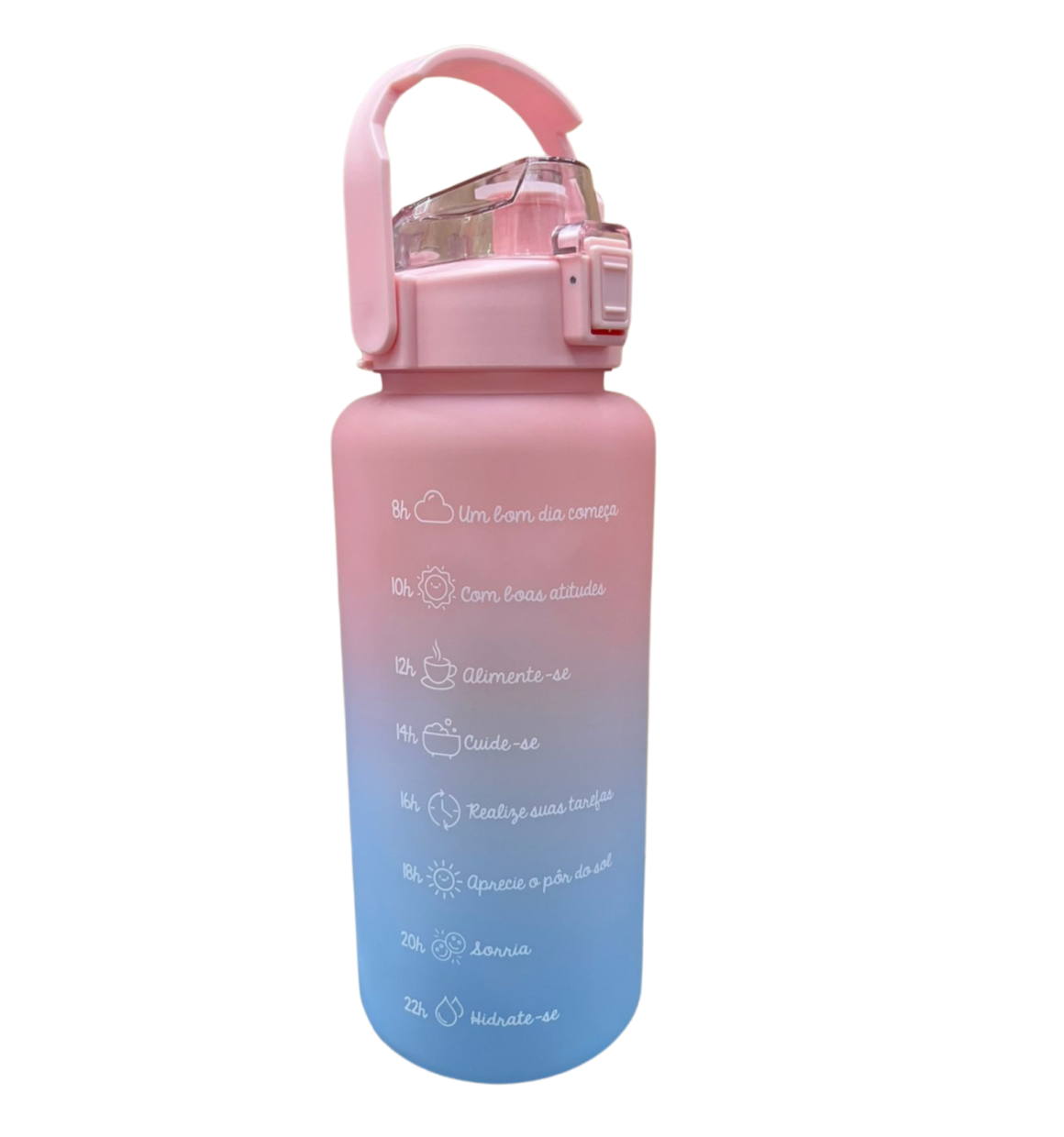 2. Garrafa Degradê Motivacional Rosa com Azul 2L