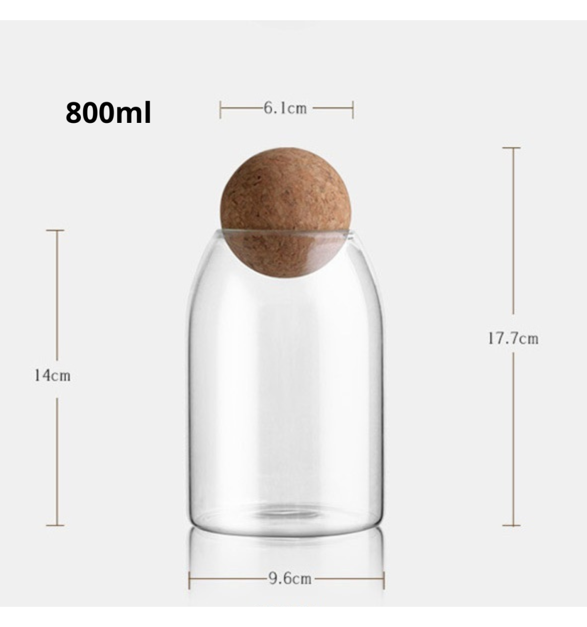 Pote de Vidro com Tampa Esfera de Cortiça 800ml