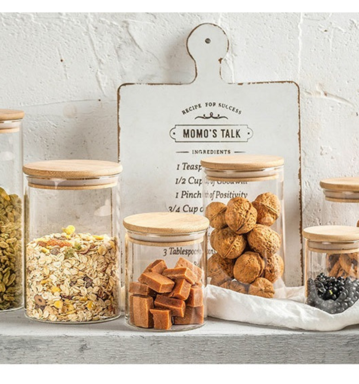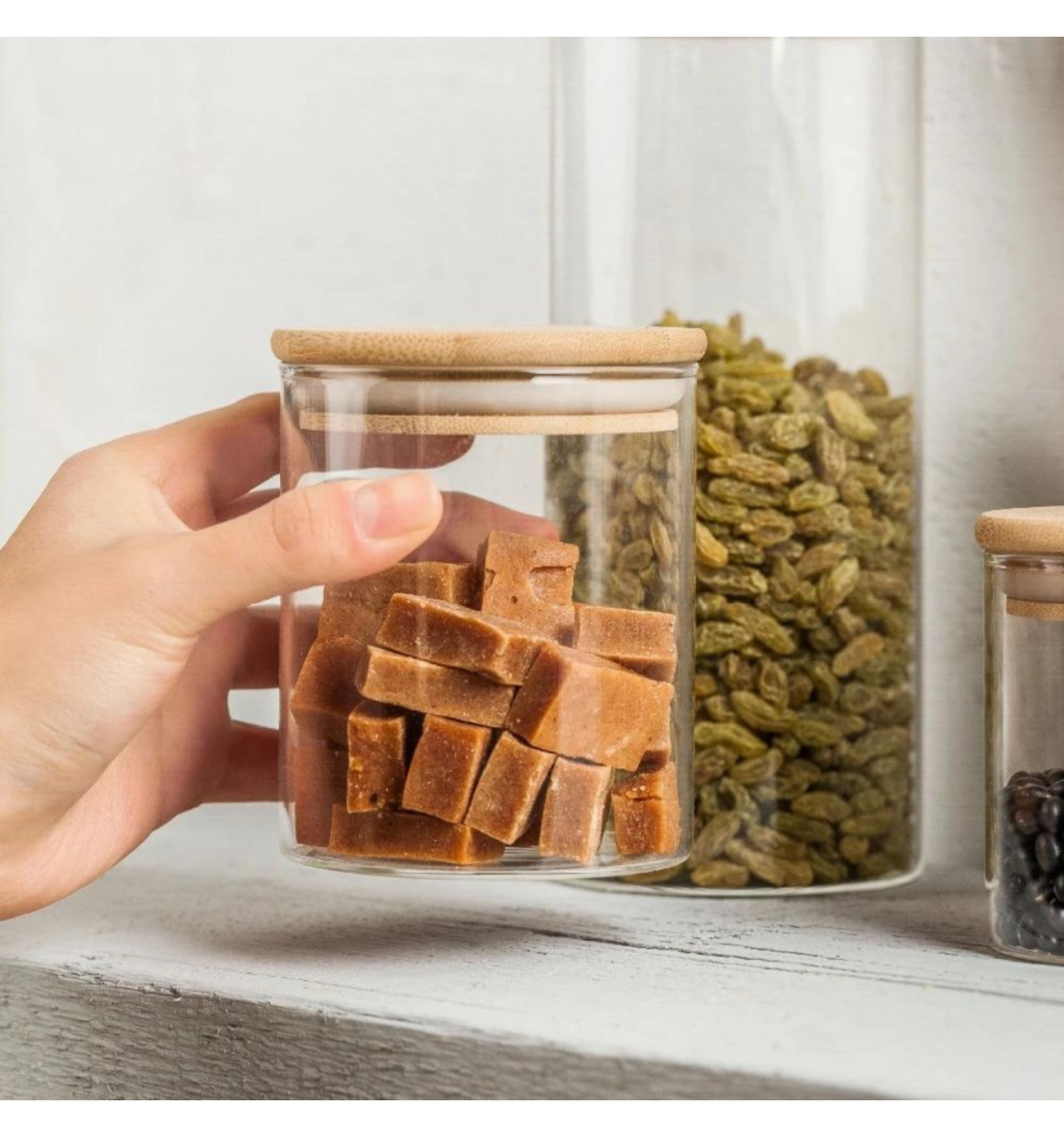 além de ter uma beleza natural da combinação vidro e bambu, esse pote tem em sua tampa um anel de silicone que garante uma vedação total - conservando os alimentos por mais tempo.