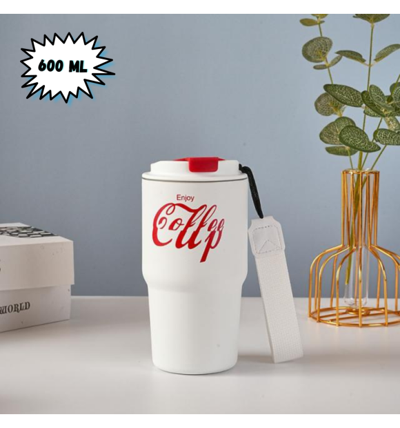 Copo Branco Térmica de Inox com Tampa 600 ml "Enjoy Coffee Cup"