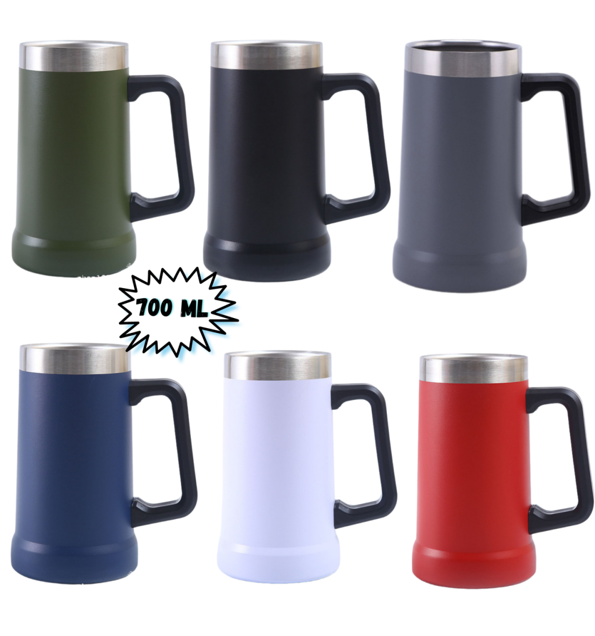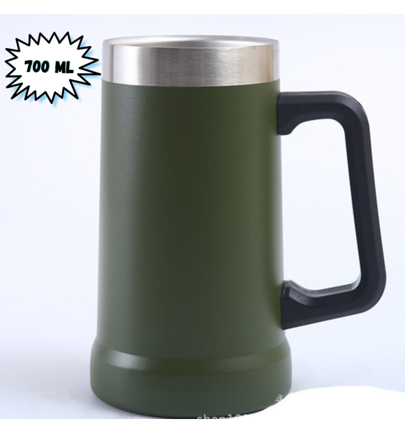 caneca térmica é perfeita para os apreciadores de bebidas na temperatura certa! Ideal para a conservação de bebidas quentes ou geladas por muito mais tempo! Bebidas quentes, a conservação é de até 1 hora. Bebidas geladas, até 5 horas . A caneca térmica dispõe de uma tecnologia especial, a Sua parede dupla em aço inox com isolamento a vácuo, produz uma camada que protege a sua bebida do contato com a temperatura ambiente. Possui uma alça resistente que proporciona mais conforto para o consumo, tem um belo design, é feito de material resistente, as paredes não transpiram, é prática no uso e fácil de limpar.