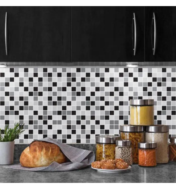 Papel de Parede Autoadesivo Pastilhas Preta e Branca .