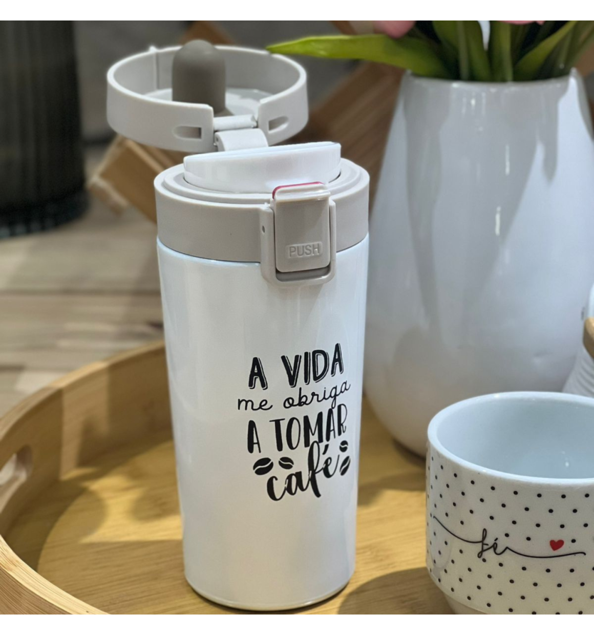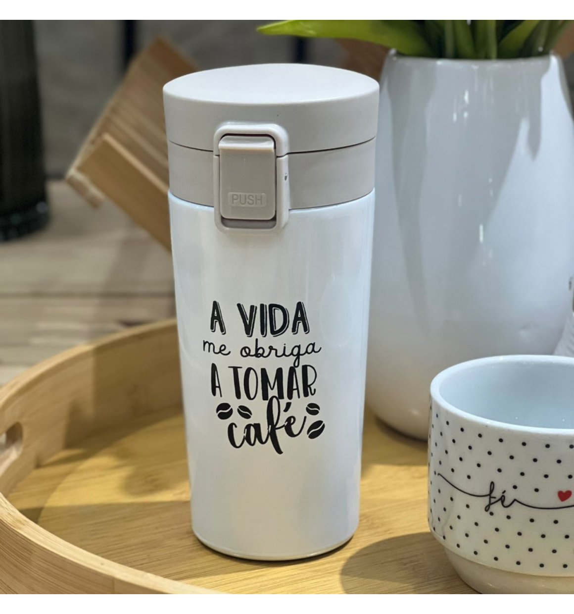 Copo Térmico Branco " A vida me obriga a tomar Café" 300ml