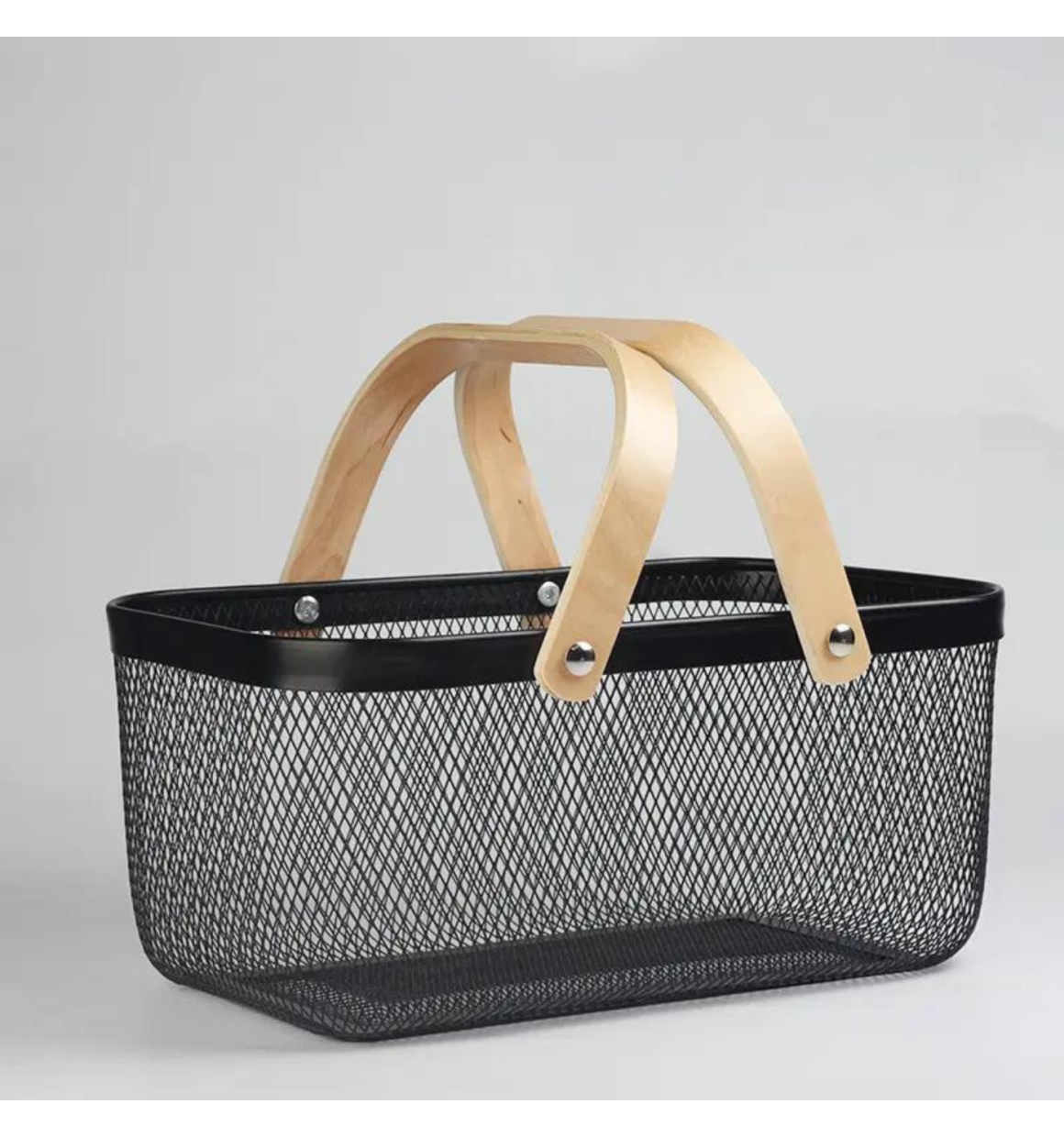 2. Cesta /Fruteira Preta de Metal com Alça de Madeira - (G)