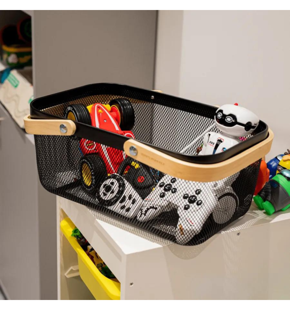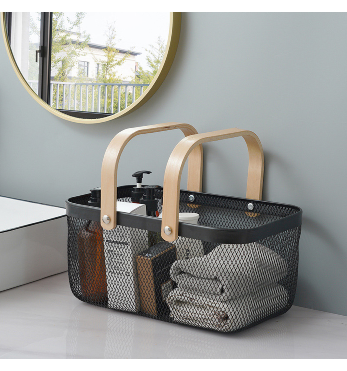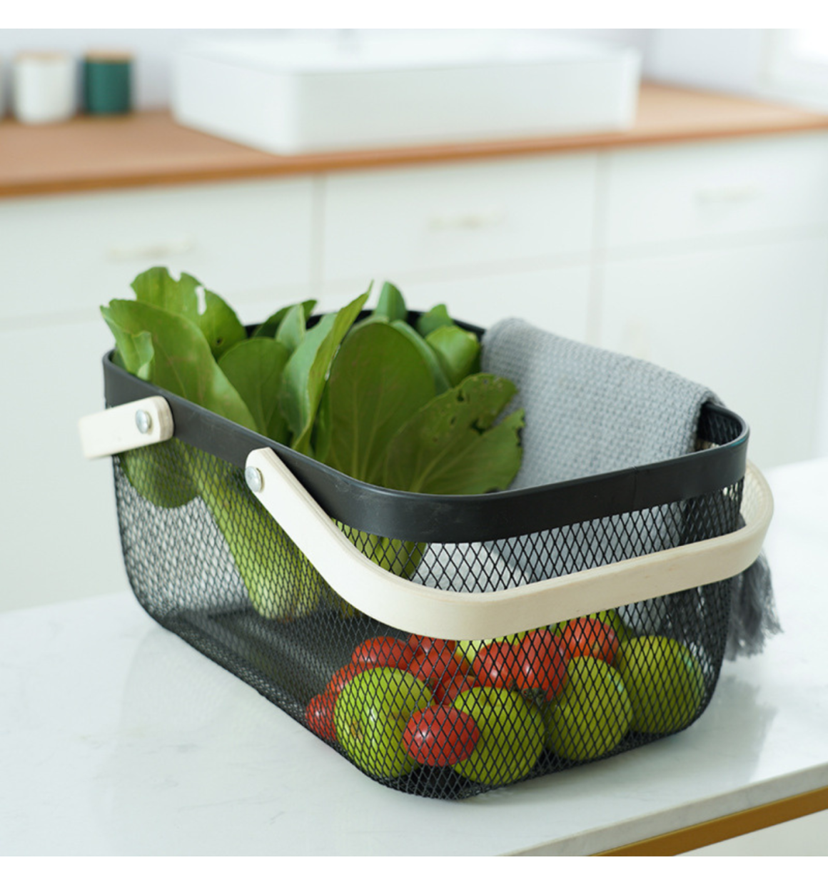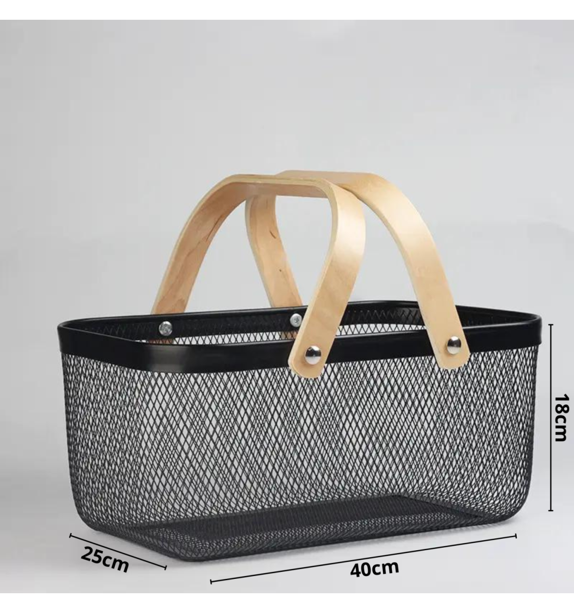 A Cesta / Fruteira Preta de Metal com Alça de Madeira - (G) RETANGULAR é perfeita para adicionar um toque de estilo e praticidade à sua cozinha, sala ou área de serviço. Sua estrutura metálica é robusta e confiável, enquanto a alça de madeira proporciona um contraste elegante.