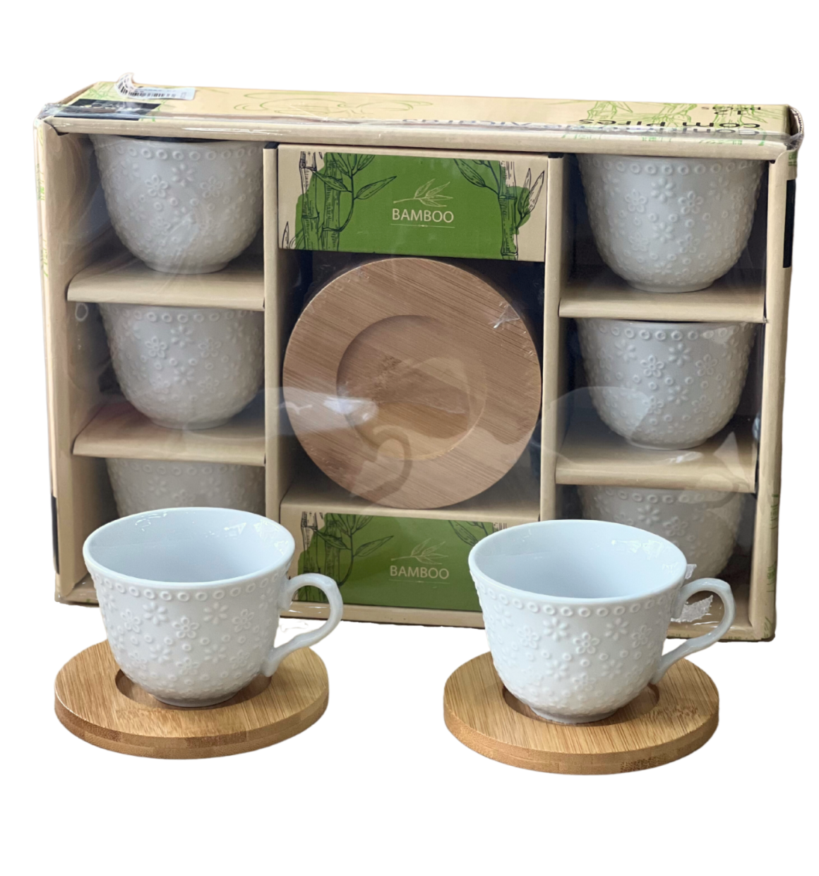 2. Jogo 6 Xicaras com Pires de Bambu Flores - 100ml