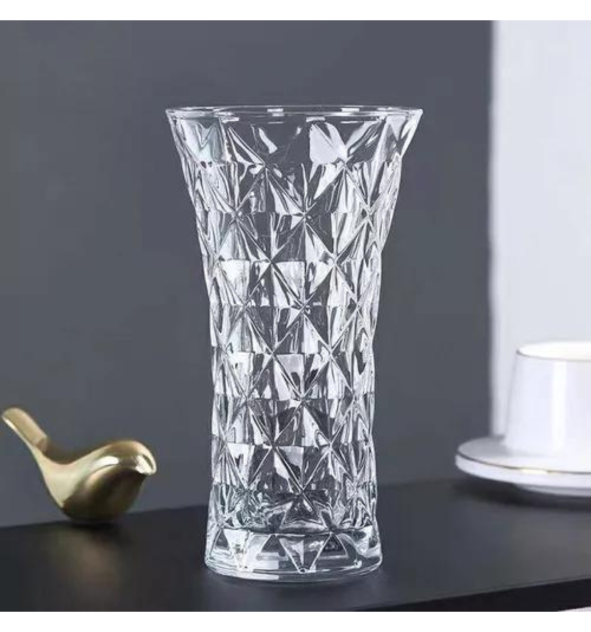 Feito de vidro de alta qualidade, este vaso possui detalhes em formato encantador de diamante, que o torna uma verdadeira peça de destaque.Ideal para realçar a beleza das suas flores favoritas .