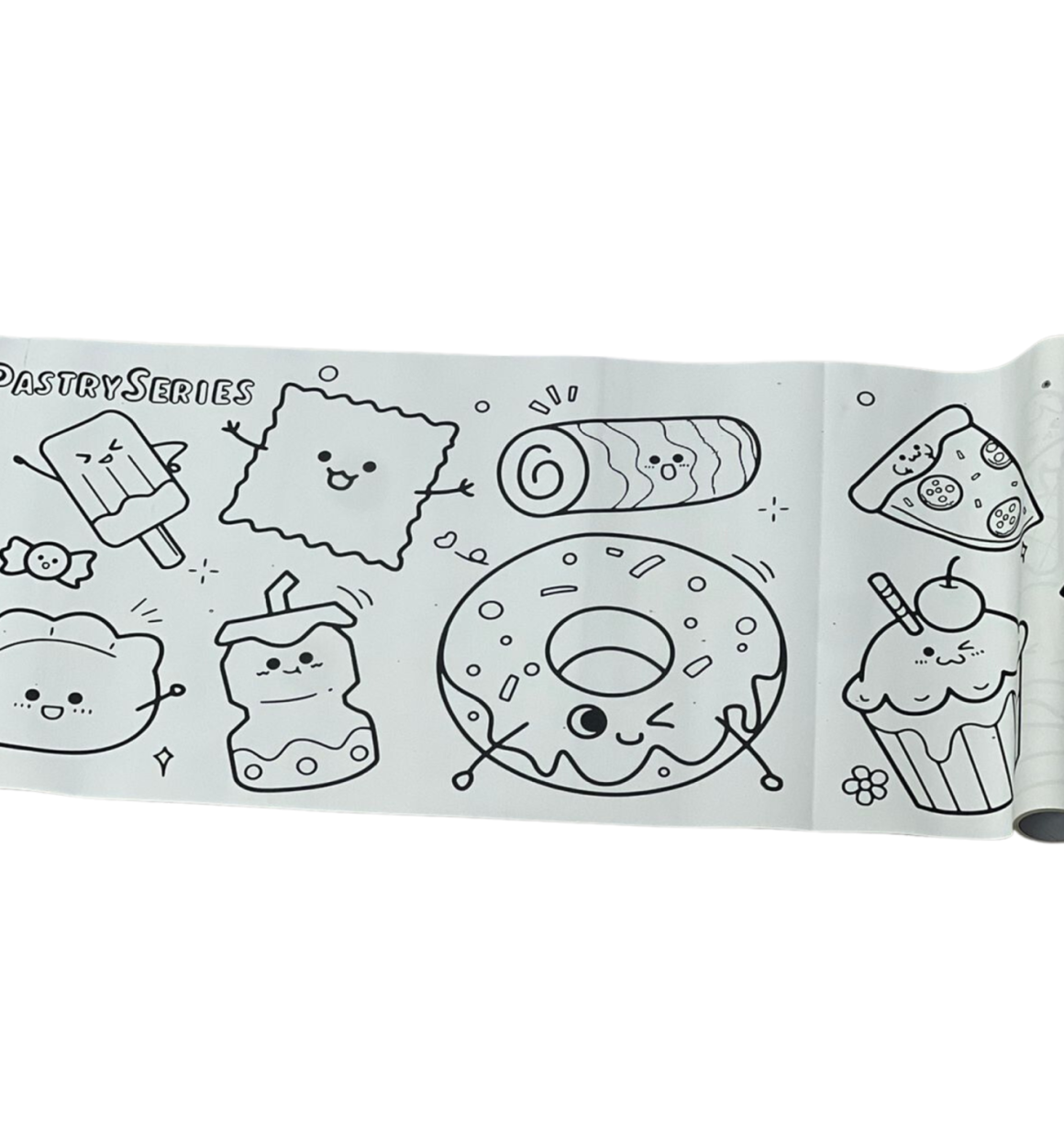 Este rolo de papel para colorir é feito com acabamento fino com superfície lisa. As crianças podem colorir livremente os desenhos e se divertir muito.