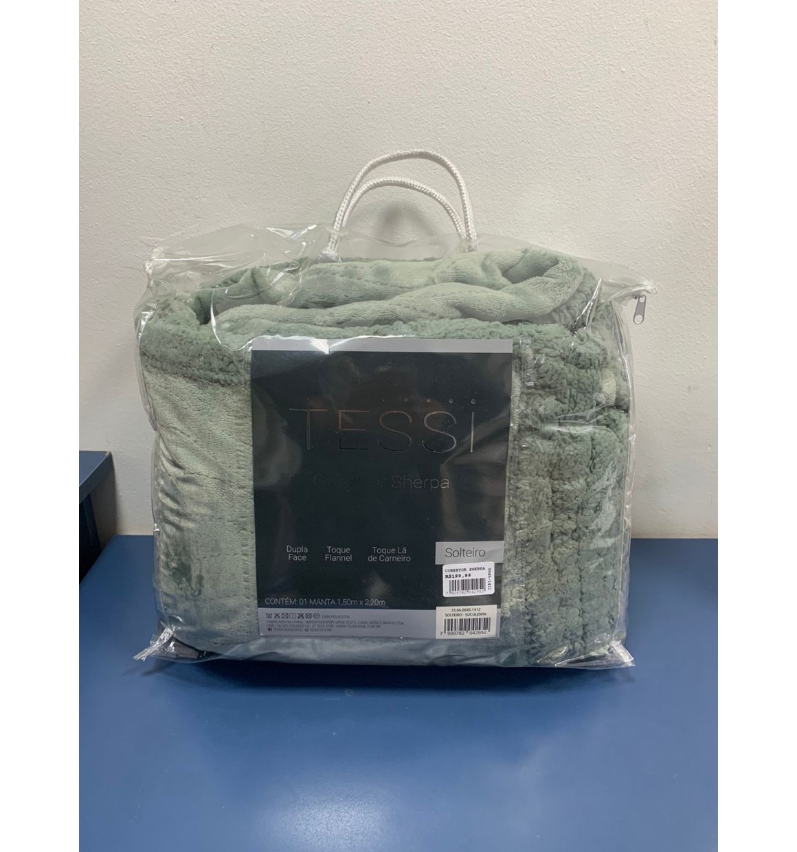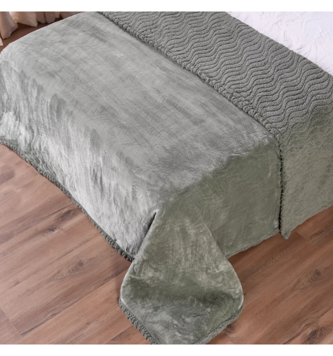 Cobertor Sherpa Solteiro 1,50x2,20m Verde Suculenta