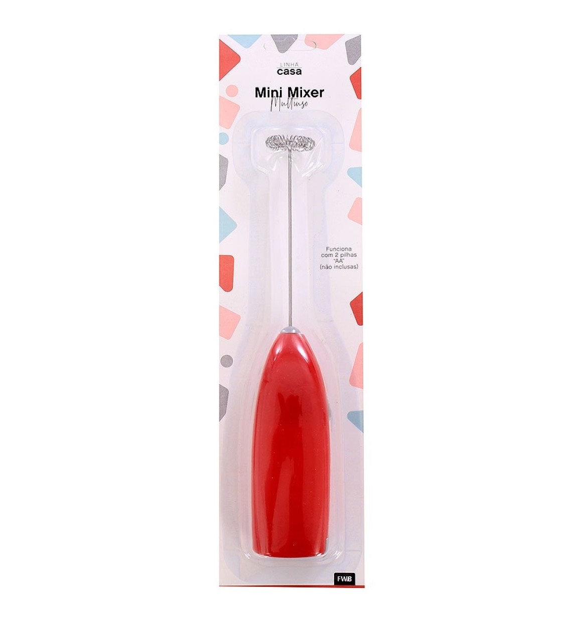 O Mini Mixer Vermelho é o assistente perfeito para suas criações culinárias. Este mixer portátil é alimentado por 2 pilhas "AA" (não incluídas), tornando-o ideal para viagens e acampamentos. Prepare suas receitas favoritas com conveniência e estilo.
