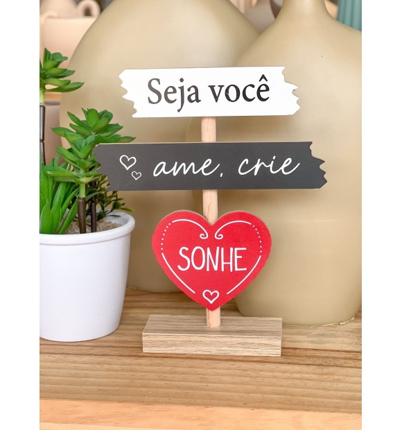Enfeite Decorativo de Madeira "Seja Você, Ame, Crie e Sonhe"
