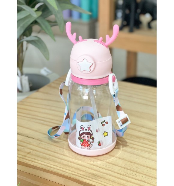 Hidratação divertida para os pequenos exploradores! Adquira a Garrafa Rosa de Plástico Infantil com Chifre de Alce agora e faça da hora da água uma brincadeira inesquecível.