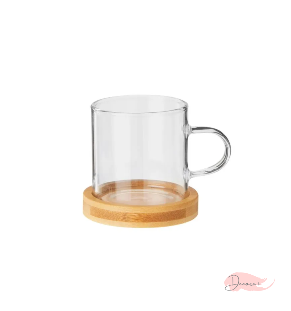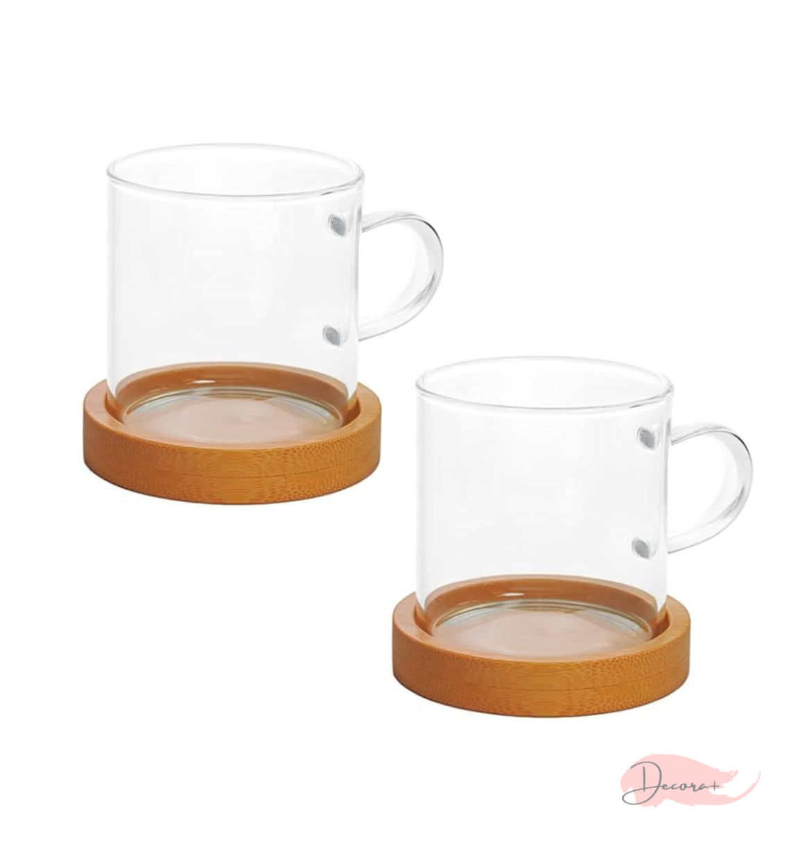 Kit com 2 Xicaras de Vidro Borossilicato com Base de Bambu 100ml