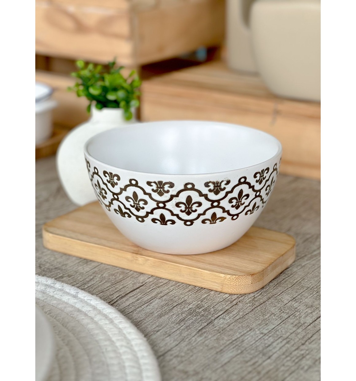 Adicione um toque de elegância à sua mesa com este belíssimo Bowl Branco realçado por um delicado Detalhe Dourado, este bowl é perfeito para servir saladas, frutas ou sobremesas com estilo e classe.