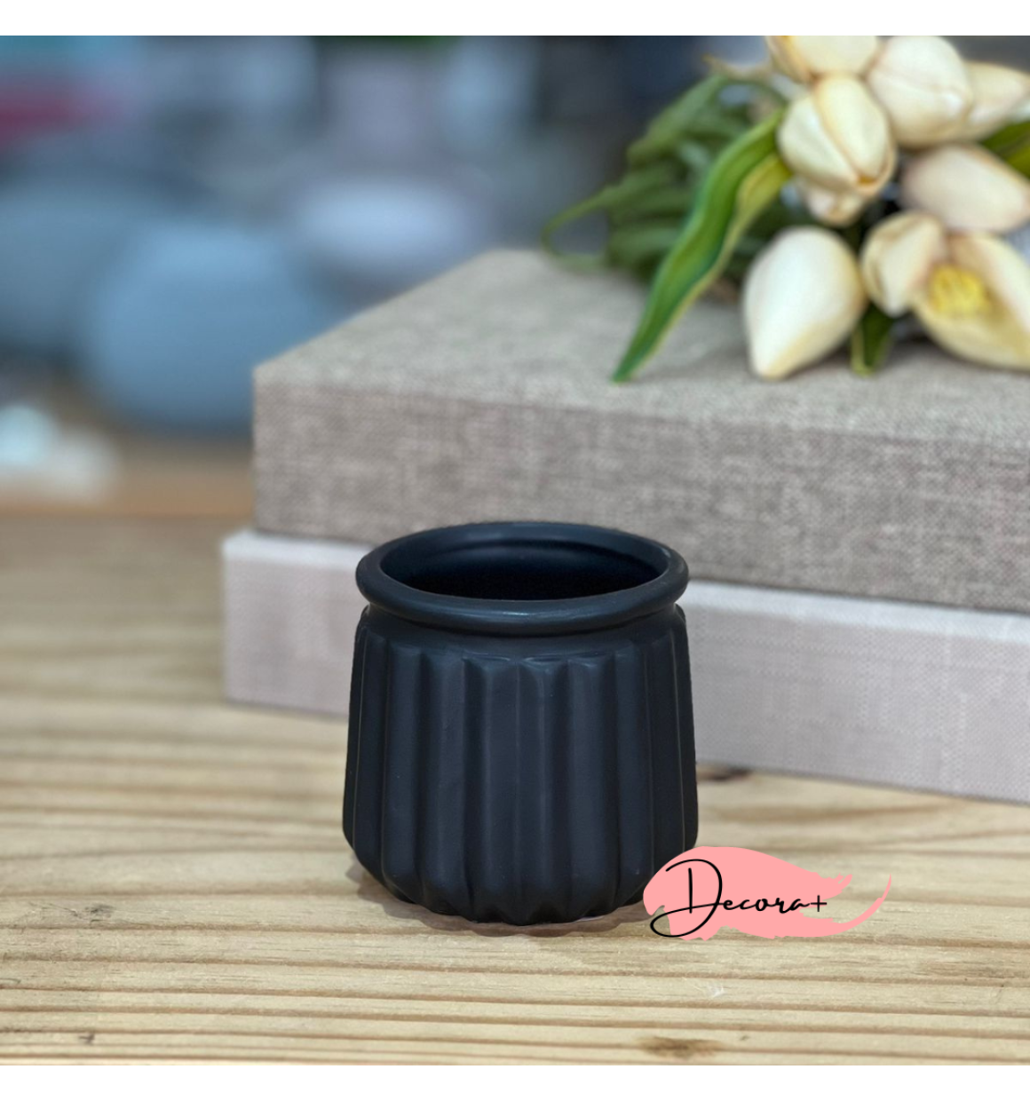 Vaso Canelado de Cerâmica Preto (PQ)- 7,5cm X 7,5cm