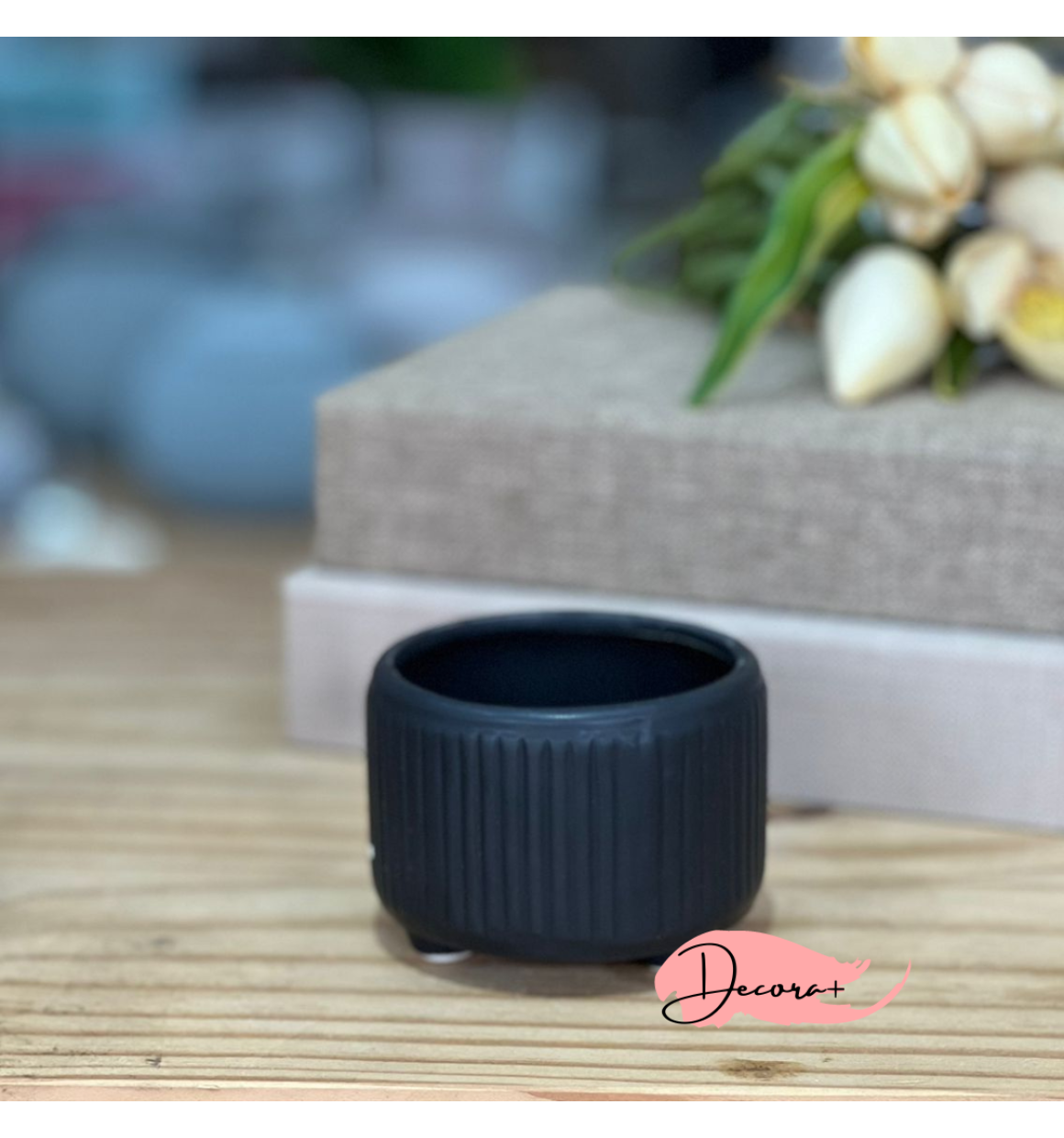 2. Vaso Canelado de Cerâmica Preto (Pq) - 6cm X 8cm