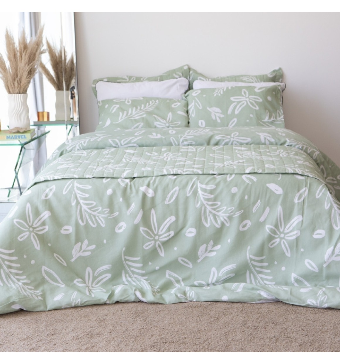 Jogo de Cama Essencialle 150 Fios Maxi Floral Verde Casal 3 Peças