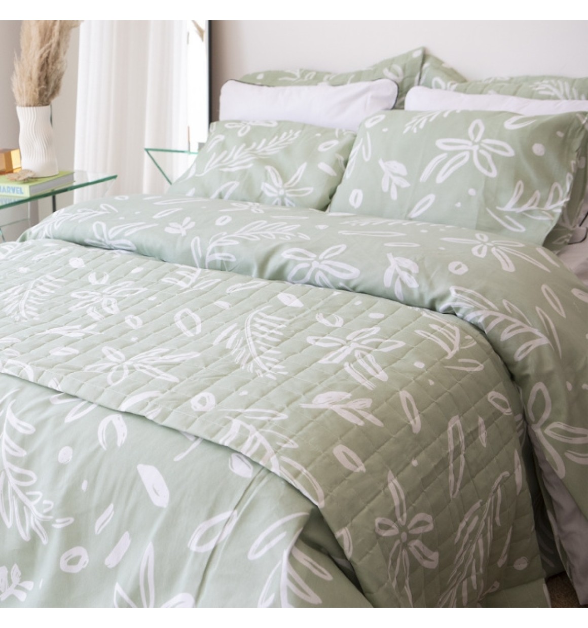 Jogo de Cama Essencialle 150 Fios Maxi Floral Verde King 4 peças