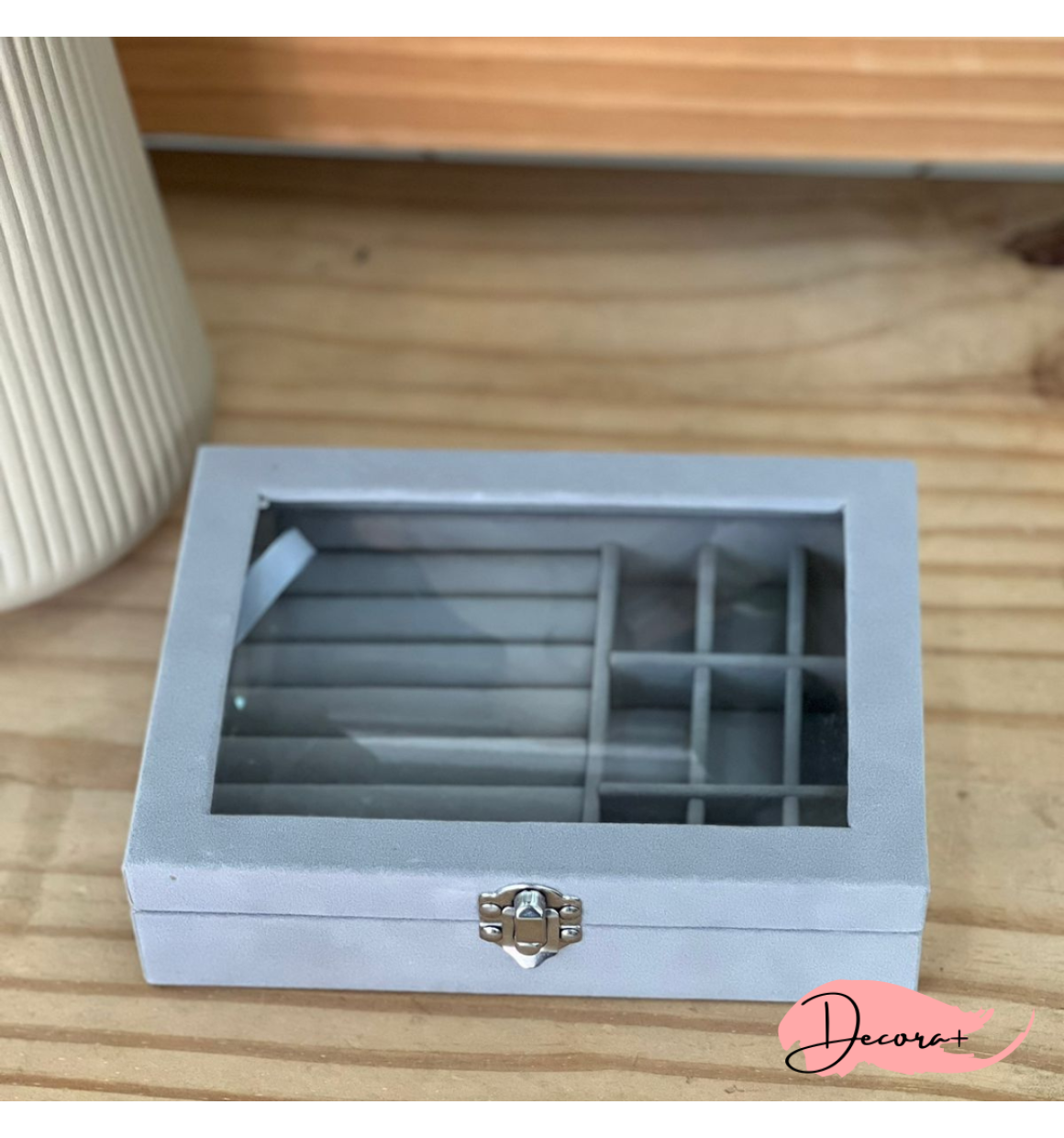 Para suas joias mais preciosas, um porta-joias à altura! O acabamento em veludo Cinza e a tampa de vidro deste Porta Joias proporcionam uma combinação perfeita de elegância e praticidade, protegendo suas peças e as exibindo de forma encantadora.