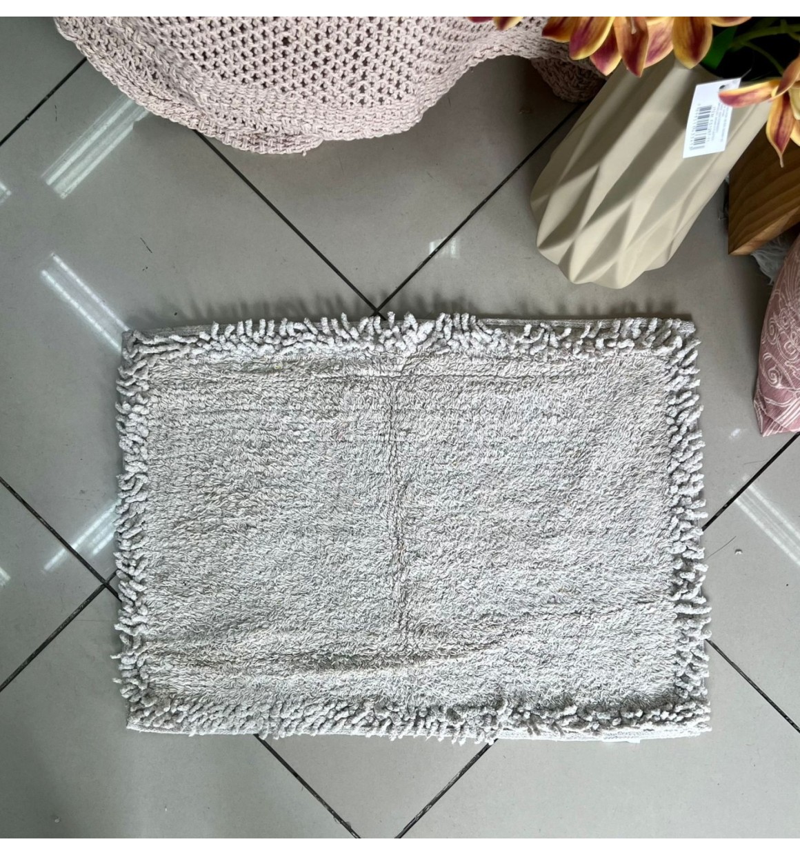 Tapete Borda Regular de Algodão Bege - 40cm X 60cm