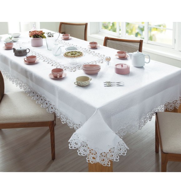 Toalha de Mesa Branca Rendada Veneza - 10 Lugares /160cm X 300cm