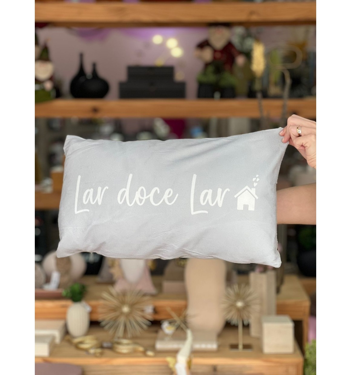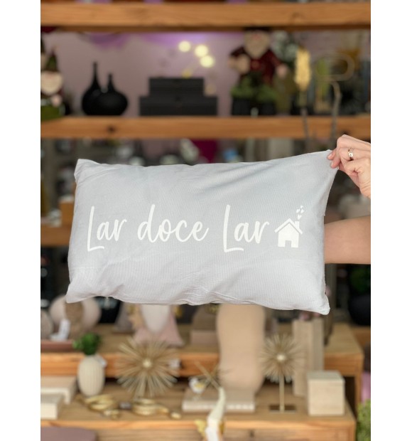Almofada Cinza "Lar Doce Lar" de Poliéster - 28cm X 48cm