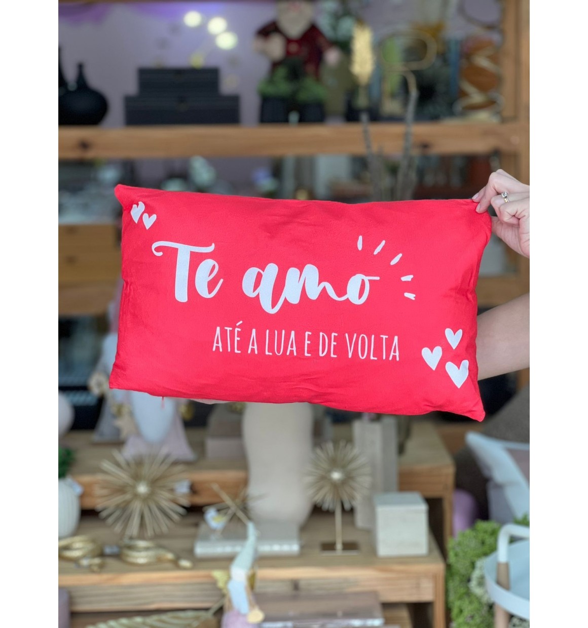 Almofada Vermelha "Te Amo" de Poliéster - 28cm X 48cm