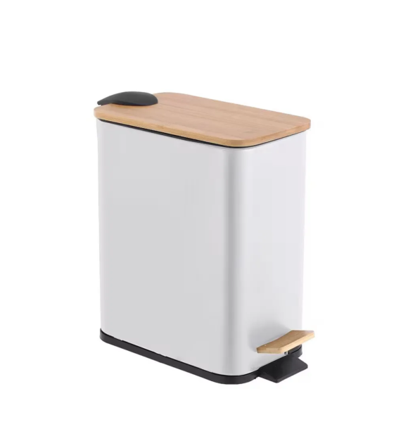 Lixeira Branca c/ Tampa de Bambu Pratice 3L - 13cm X 25cm X 24cm