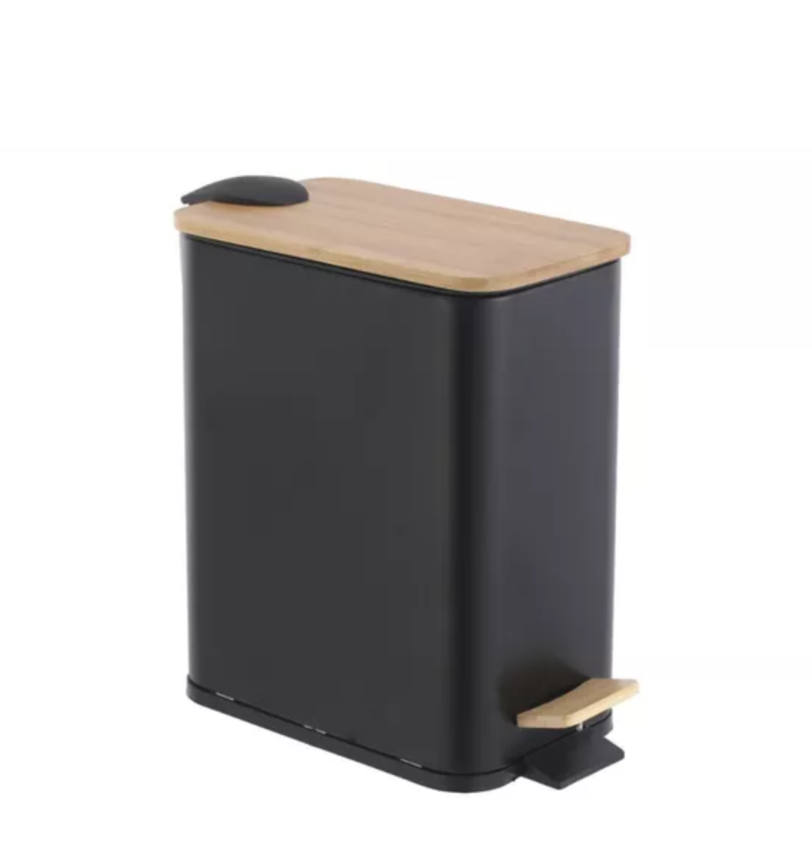 Lixeira Preta c/ Tampa de Bambu Pratice 3L - 13cm X 25cm X 24cm