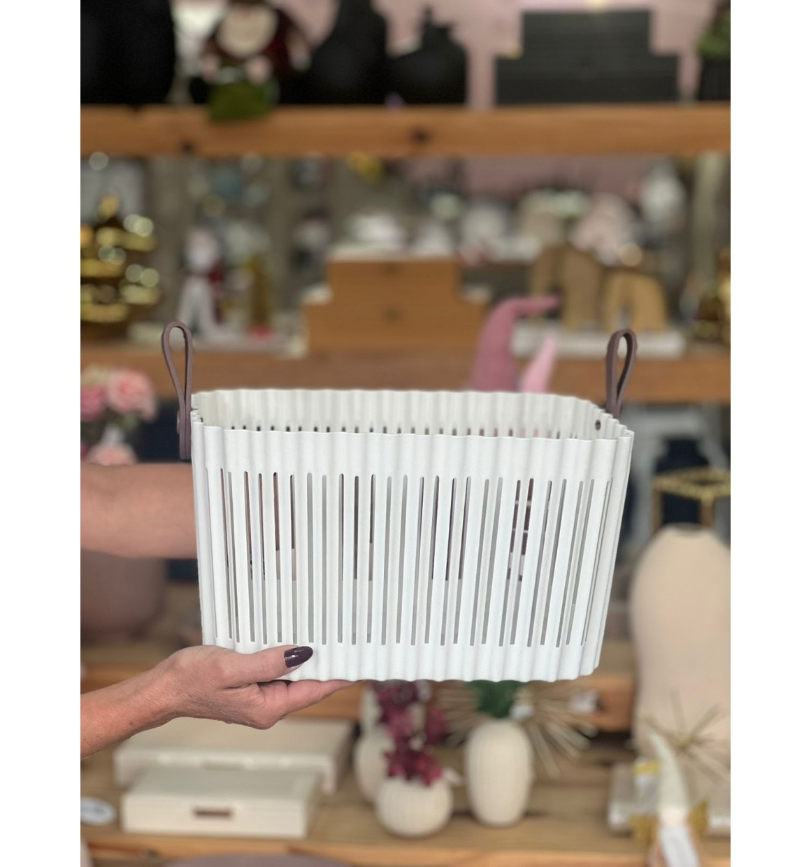 Cesto Organizador Branco c/Alça de Plástico - 18cm X 22cm X 32cm