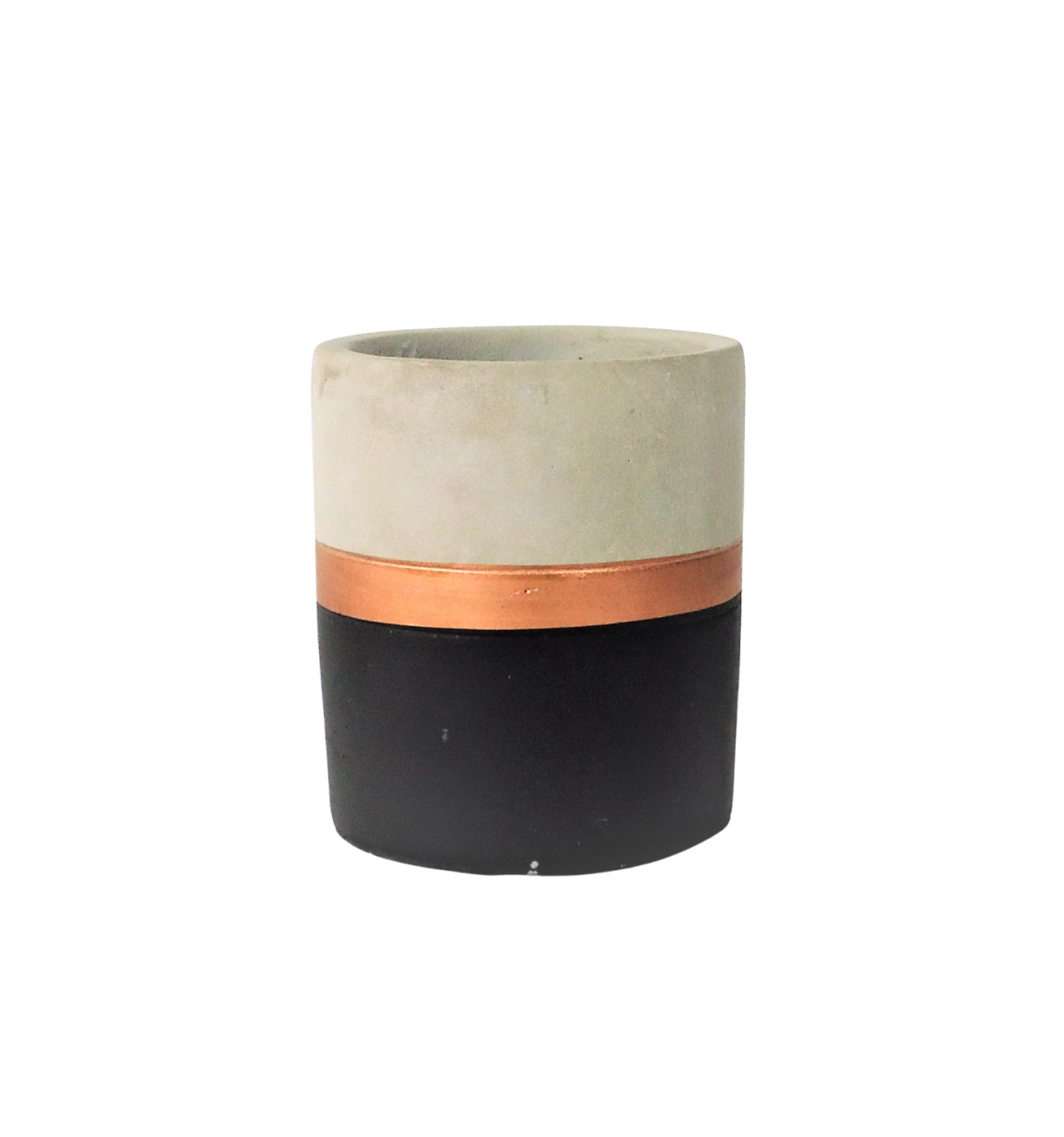 Vaso de Porcelana Preto com Faixa Rose - 8cm x 9cm