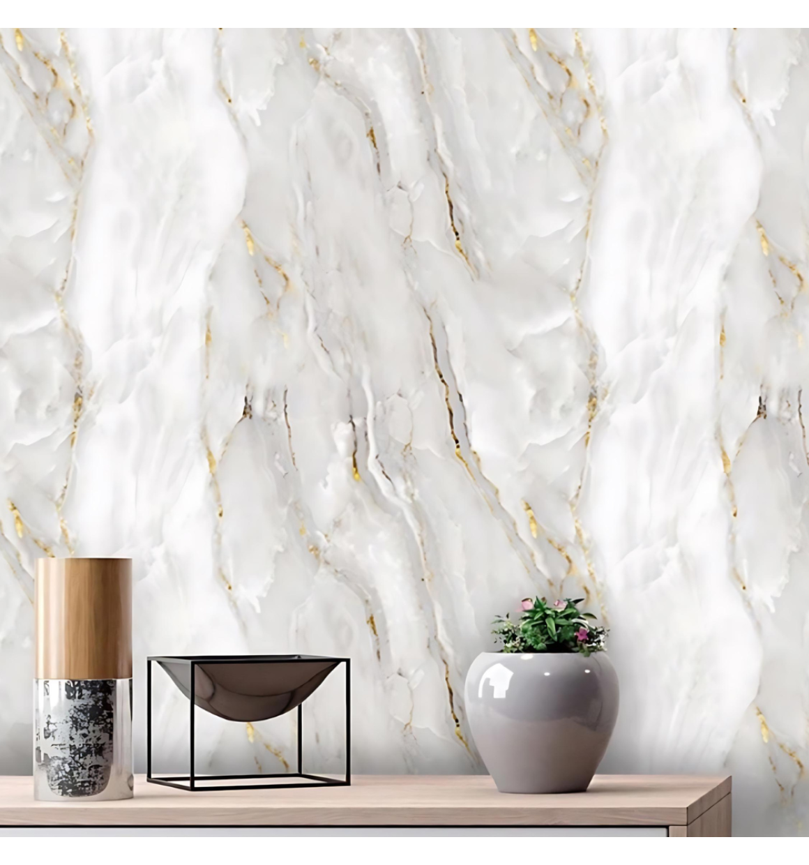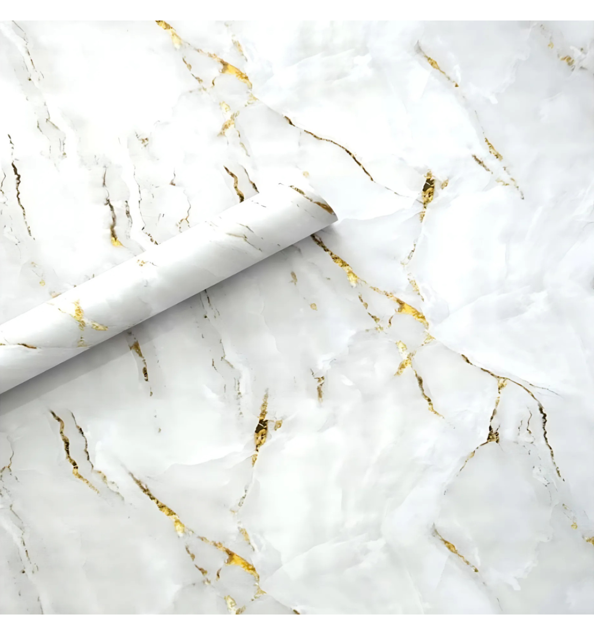 Papel de Parede Marmore Branco C/Dourado 10m X45cm Autoadesivo