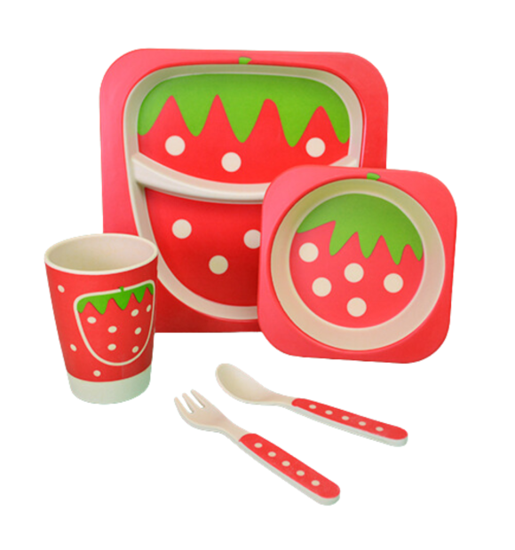 1 prato com divisórias 21cm, 1 tigela 14cm ,1 copo 9,5cm 1 garfo e 1 colher de 13cm .