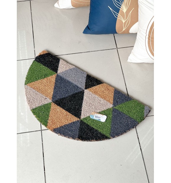 Com design em meia lua e fabricado em fibra de coco, este capacho é resistente e prático, ideal para quem quer unir estilo e limpeza. Medindo 33cm x 60cm, ele se adapta a diversos espaços.