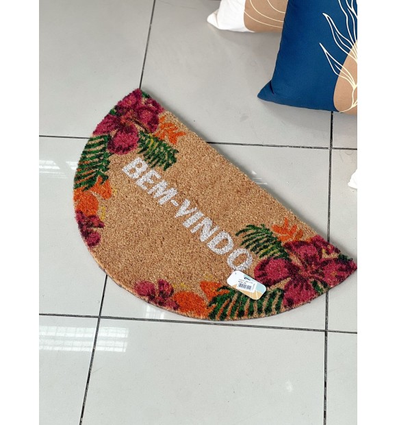Tapete Capacho em Fibra de Côco Meia Lua -  Floral 33cm X 60cm