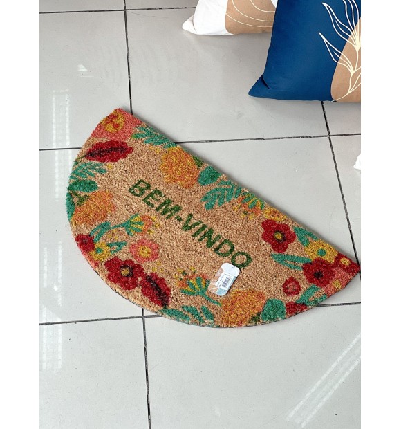Tapete Capacho em Fibra de Côco Meia Lua -  Floral 33cm X 60cm