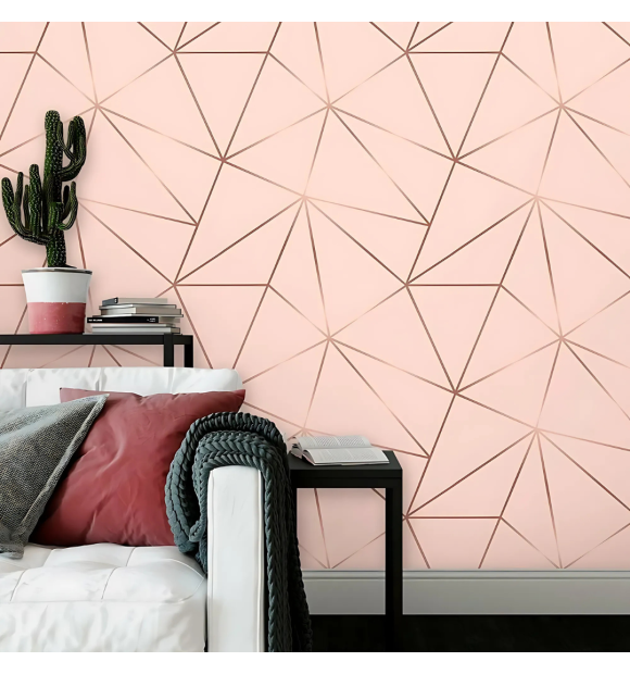 2. Papel de Parede Autoadesivo Zara Rosa c/ Dourado - 5m X 45cm